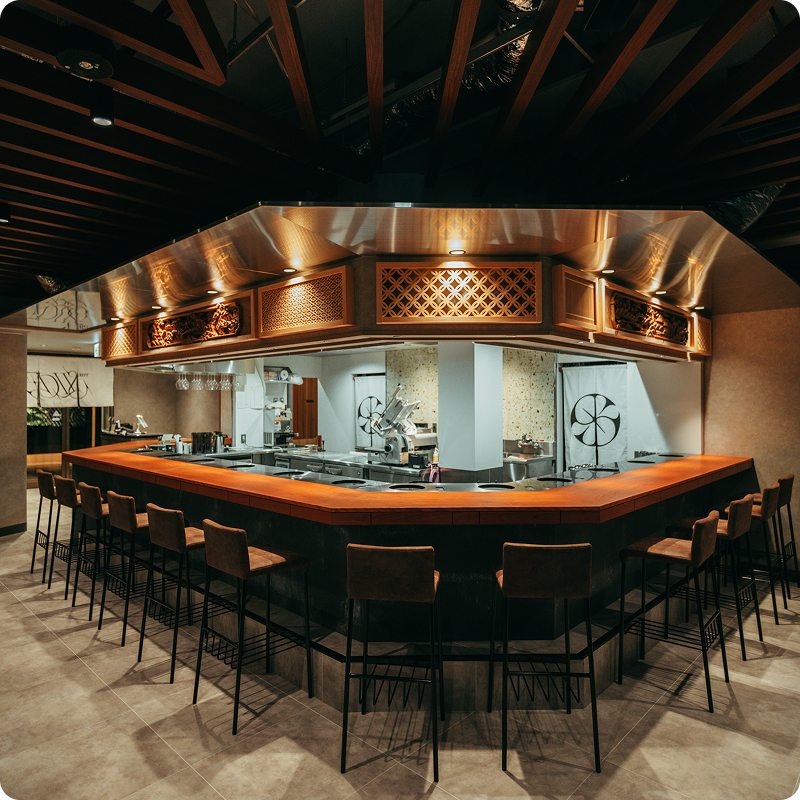 そして、しゃぶしゃぶ・すき焼きが持つ和の要素と、ステーキが持つ洋の要素を調和させた内装。